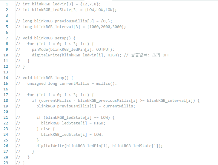어쨌든 millis로 다양한 led를 테스트 하고 있다.