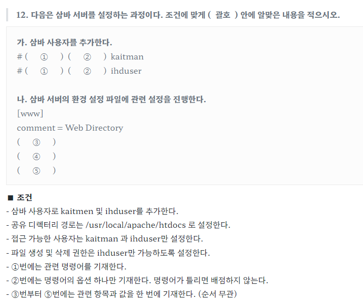 - hosts allow = 192.168.12. (192.168.12.0/255.255.255.0도 가능)