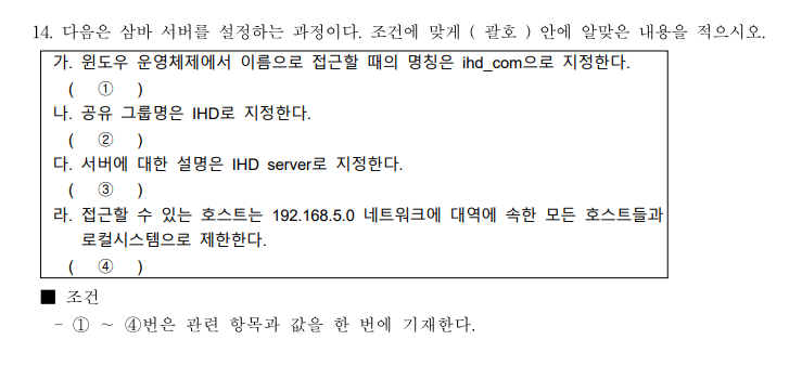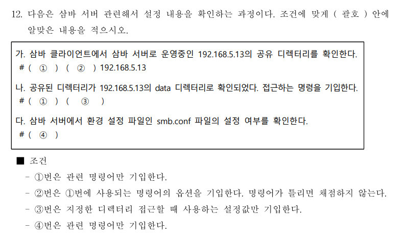 다음은 SAMBA 서버 접속 클라이언트 접속 설정에 대한 내용이다. ( 괄호 ) 안에 알맞은내용을 넣으시오.
