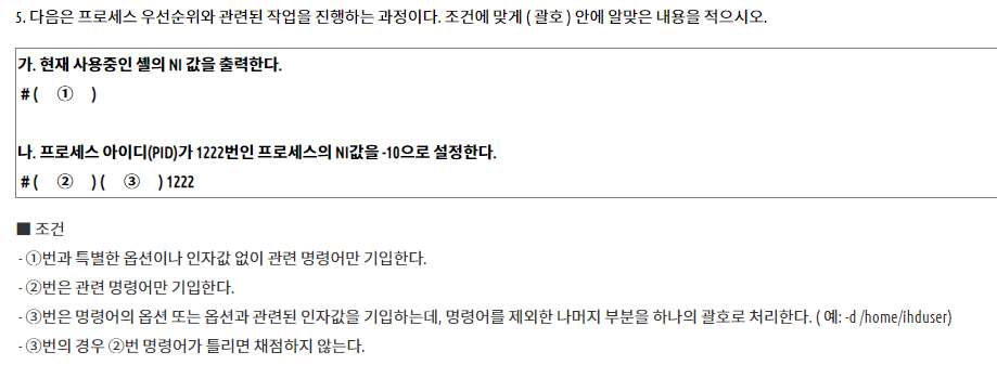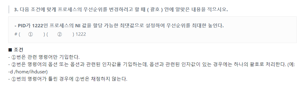 | nice | 명령어를 치는 순간 지정한 우선순위로 프로세스를 실행 |